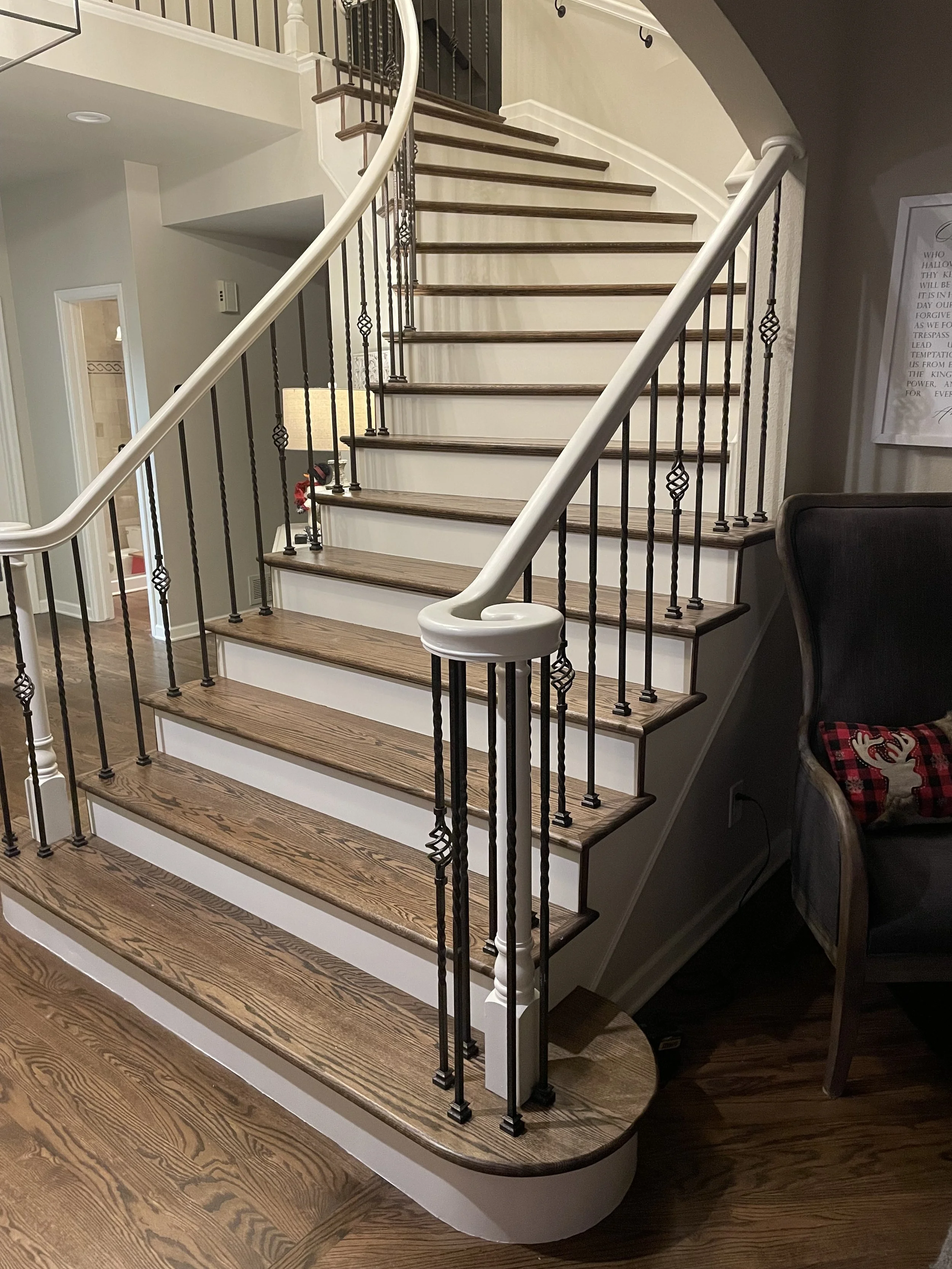 We build and refinish hardwood staircases, including tread and riser replacements, stair resurfacing, and custom stain matching. We can also install or update balusters and handrails.